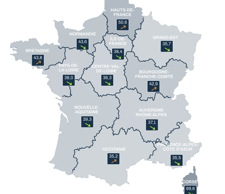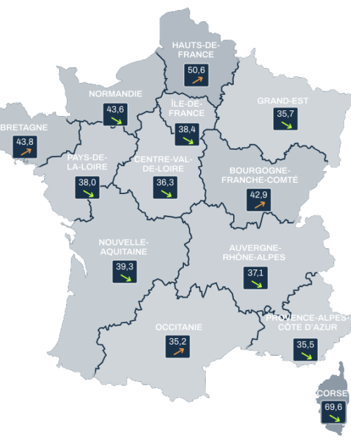 voir la carteÉmissions de CO2 en France des véhicules neufs