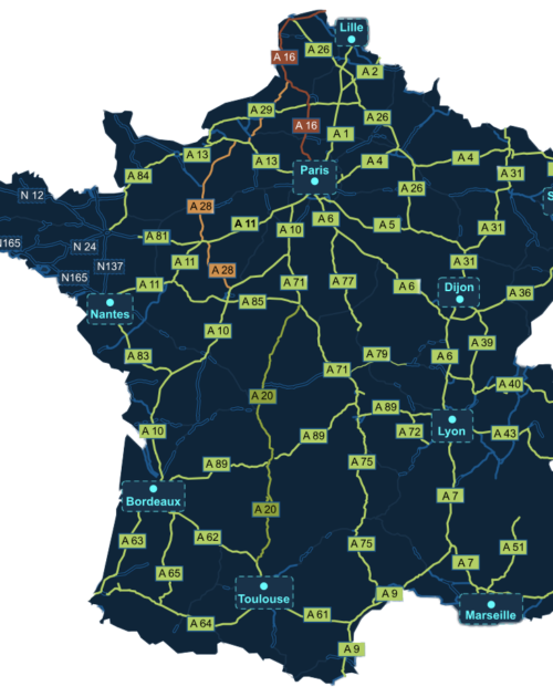 voir la carteDéploiement des bornes de recharge en France sur autoroutes